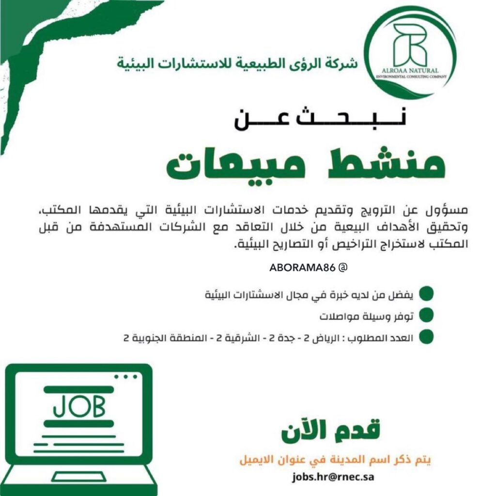 وظائف جدة شركة استشارات بيئية تبحث عن مسؤول ترويج خدمات الشركة البيئية بواسطة الوظيفة1 في مارس 24, 2025 شارك مع اصدقائك شركة استشارات بيئية تبحث عن مسؤول ترويج خدمات الشركة البيئية طريقة التقديم: يرجى ارسال السيرة الذاتيه على الايميل الموجود بأسفل الصورة شارك مع اصدقائك