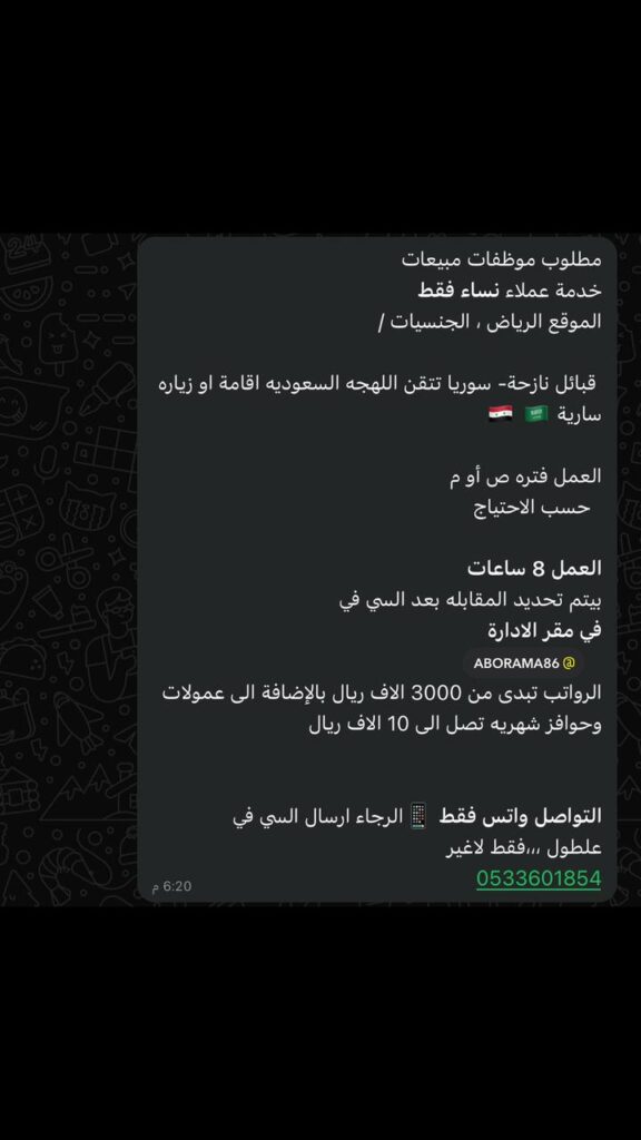 كل المناطق وظائف نسائية خدمة عملاء (مبيعات) | اقامة أو زيارة بواسطة الوظيفة1 في أبريل 8, 2025 شارك مع اصدقائك وظائف نسائية خدمة عملاء (مبيعات) | اقامة أو زيارة طريقة التقديم والتفاصيل موجودة بالصورة التي بالاسفل وظائف مشابهة كل المناطق مستشفيات الحياة الوطني تعلن عن فتح استمارة التوظيف بجميع التخصصات الطبية نوفمبر 22, 2025 كل المناطق شركة إيرباص Airbus توفر وظائف ادارية ومالية وهندسية وفنية بالرياض وخميس مشيط نوفمبر 21, 2025 كل المناطق وظائف شركة عبداللطيف جميل 2025 فرص توظيف في عدد من المناطق بالمملكة نوفمبر 21, 2025 كل المناطق وظائف صحية وإدارية بمركز رافا الطبي في الرياض نوفمبر 21, 2025 كل المناطق وظائف صحية بدوام كامل وجزئي لدى عيادات فيزيوثيرابيا للعلاج الطبيعي نوفمبر 21, 2025 كل المناطق وظائف اعضاء هيئة تدريس للسودانيات للتدريس في السعودية – مطلوب أستاذ مساعد/أستاذ مشارك بالادارة نوفمبر 20, 2025 يمكنك قراءت أيضا | موظفات استقبال – صالون نسائي بالرياض شارك مع اصدقائك