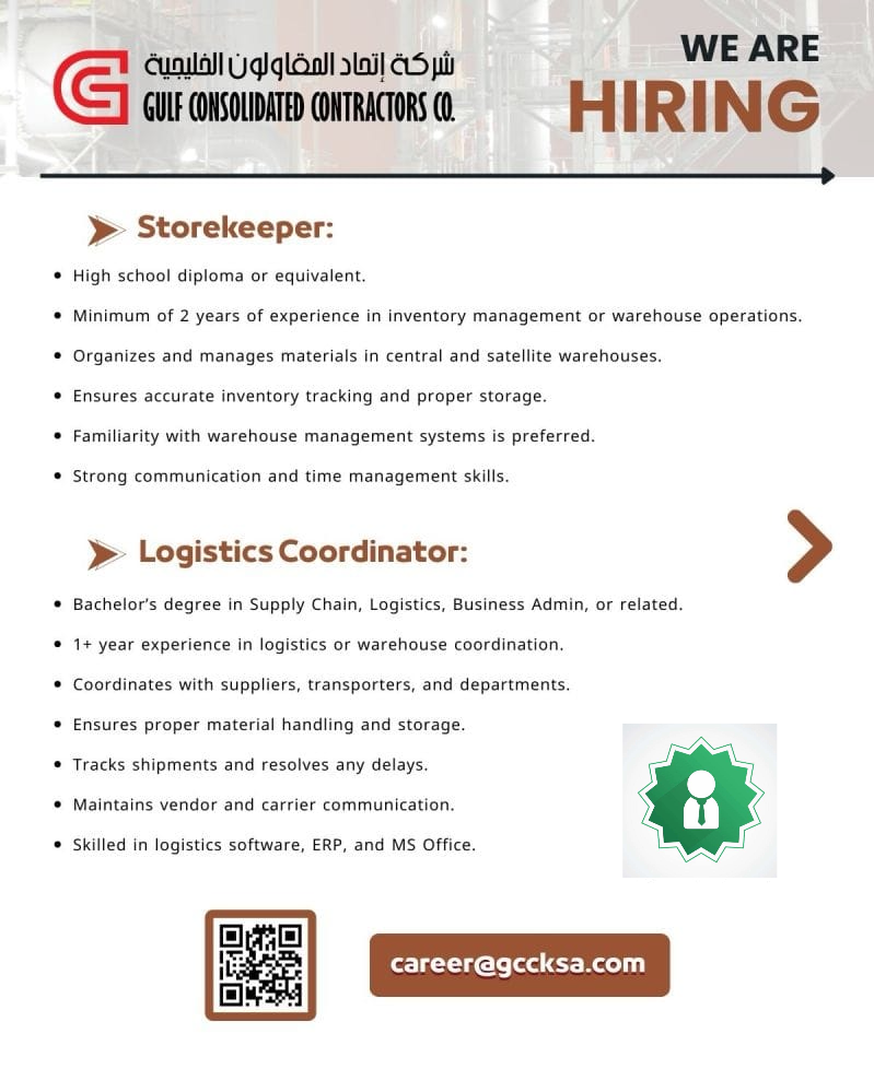 وظيفة أمين مستودع ومنسق لوجستي شاغرة | شركة اتحاد المقاولون