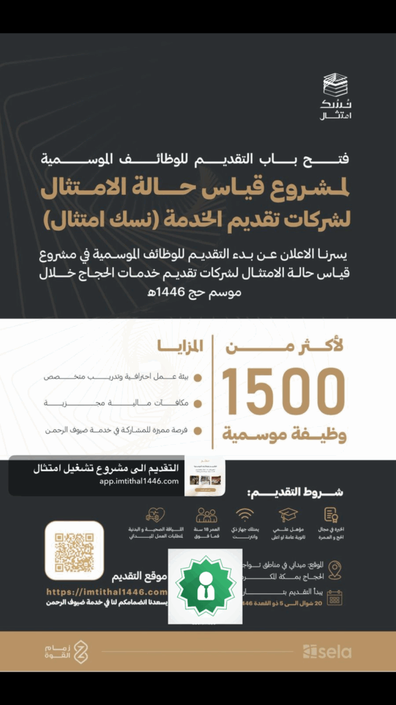 وظائف موسمية لتقديم خدمات الحجاج لقياس الامتثال خلال موسم الحج 1446هـ