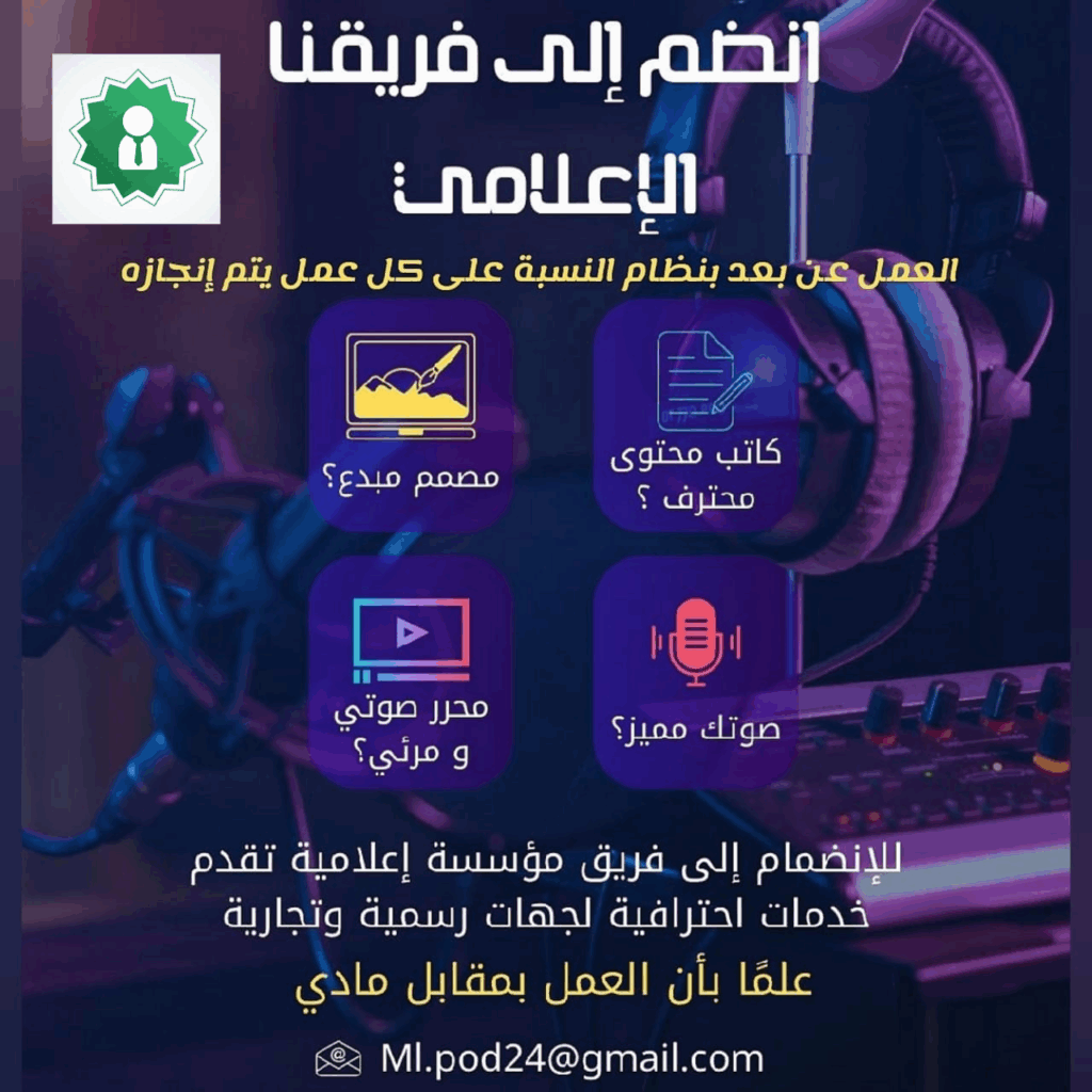 انضم إلى فريق إعلامي يقدم خدمات احترافية لجهات رسمية وتجارية، وكن جزءًا من مشاريع ذات طابع احترافي وإبداعي.