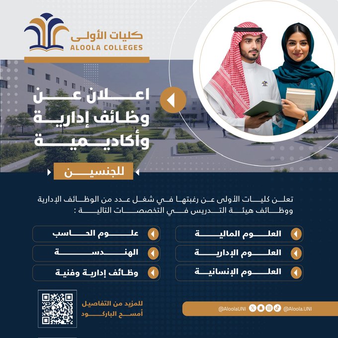 📌 للتفاصيل الكاملة حول الوظائف وطريقة التقديم، يرجى زيارة الموقع الإلكتروني الرسمي لكليات الأولى