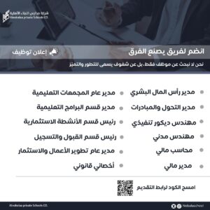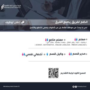 نحن لا نبحث عن موظف فقط، بل عن شخص شغوف بالتعليم، مؤمن بالرسالة، ويتطلع للتميّز والتطوير المستمر.