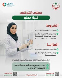 وظيفة شاغرة في القطاع الطبي | فنية مختبر – مجمع أم القرى الطبي – مكة المكرمة
