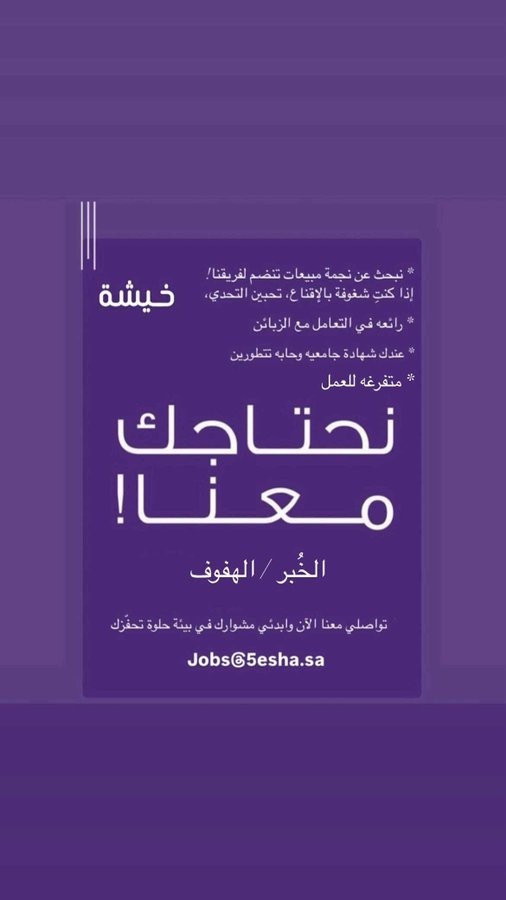 وظيفة شاغرة مطلوب موظفات مبيعات لدى شركة خيشة