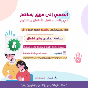 إعلان وظيفي – معلمة لغة إنجليزية لرياض الأطفال – شمال الرياض