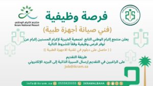 إعلان وظيفي – فني صيانة أجهزة طبية