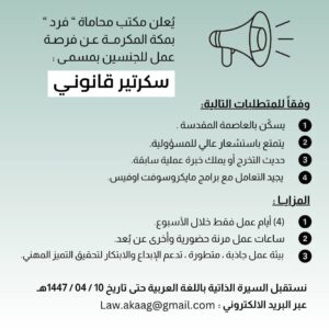 وظيفة سكرتير/ة قانوني – مكتب فرد للمحاماة | مكة المكرمة