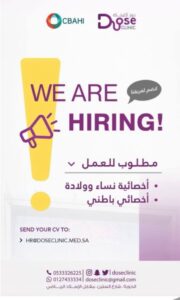 فرص وظيفية شاغرة – عيادة دوز كلينك (Dose Clinic) – الحوية