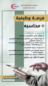 مستشفى النهضة العام يُعد من المرافق الطبية الرائدة في المملكة، ملتزم بتقديم خدمات صحية متميزة عالية الجودة. يسعى المستشفى إلى توظيف محاسب محترف للانضمام إلى فريق الإدارة المالية ودعم العمليات المحاسبية اليومية بكفاءة واحترافية.