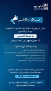 وظيفة باحث قانوني في الرياض لدى مكتب الكودري للمحاماة والاستشارات القانونية