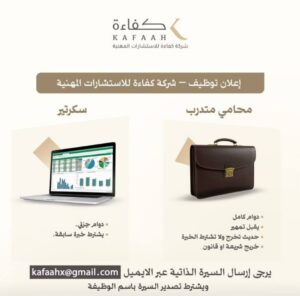 وظائف شاغرة في شركة كفاءة للاستشارات المهنية: محامي متدرب وسكرتير
