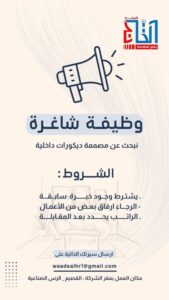 إعلان وظيفة شاغرة (مصممة ديكورات داخلية)