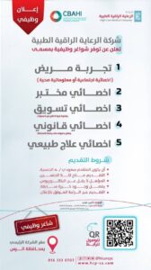 شركة الرعاية الراقية الطبية يشمل الشواغر الوظيفية التالية: