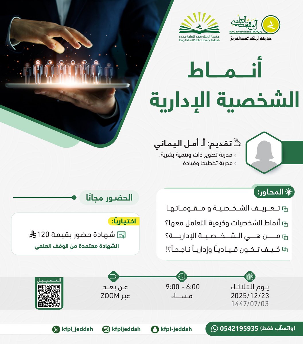 – الموعد: يوم الثلاثاء بتاريخ 1447/07/03هـ الموافق 2025/12/23م (من 6:00 مساءً إلى 9:00 مساءً).