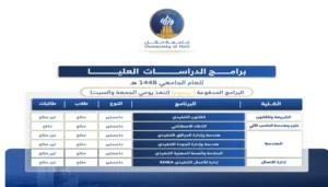 جامعة حائل تعلن عن منحة برامج الدراسات العليا المجانية والمدفوعة بكل التخصصات للعام 1448هـ
